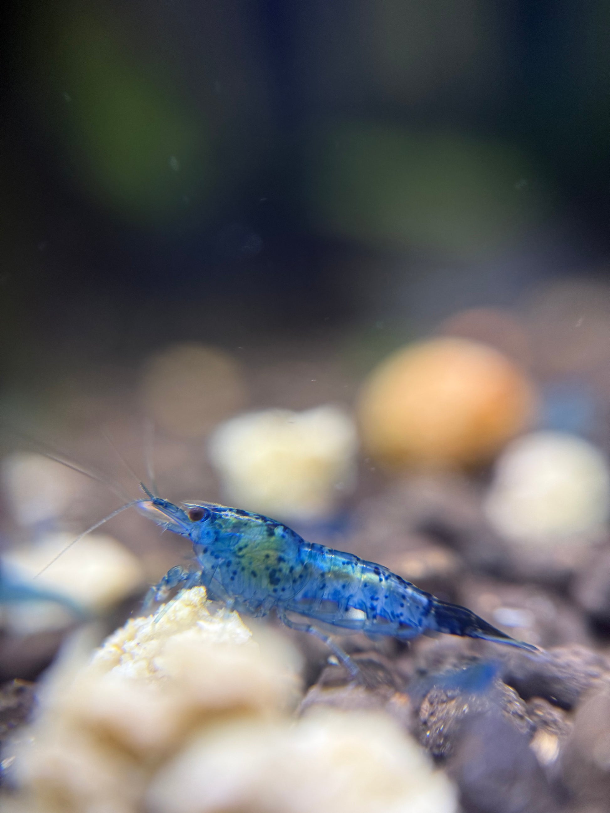 These freshwater shrimp showcase rich, dark blue hues that stand out beautifully against green plants and dark substrates. Their vibrant color, peaceful nature, and active behavior make them a favorite for both shrimp enthusiasts and aquascapers.